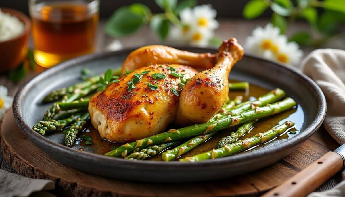 5 étapes précises pour un poulet rôti moelleux avec asperges croquantes en mars